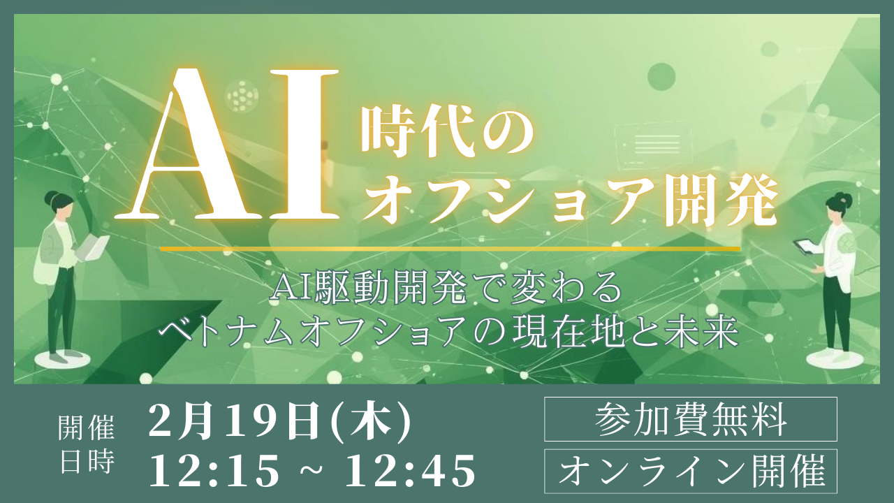 株式会社アイディーエス(本社:東京都港区、代表取締役:中野 貴志、以下アイディーエス)は、2026年2月19日(木)に、オフショア開発におけるAI活用についてのオンラインセミナー「AI時代のオフショア開発 ― AI駆動開発で変わるベトナムオフショアの現在地と未来 ―」を開催いたします。